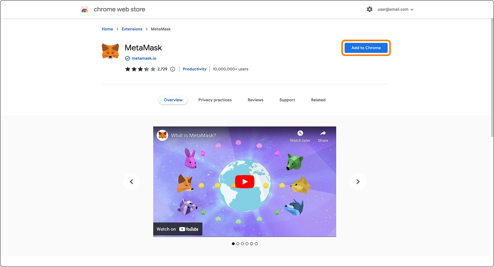 Click “Install MetaMask for Chrome”. You will be directed to the Chrome Web Store.